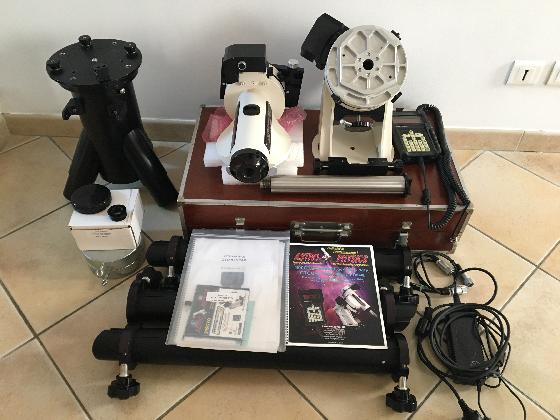 Lot n°2 : Meade LX90 203mm complet (raquette, alim, pied, chercheur 8X50), avec réducteur de focale et renvoi 90. C’est le modèle acheté à Airylab dont le rapport complet de mesure optique est toujours disponible en ligne sur leur site : Un très bon LX90 avec des qualités optiques remarquables pour un modèle de série. Il a une caisse spécifique de transport très solide. Prix 950 €