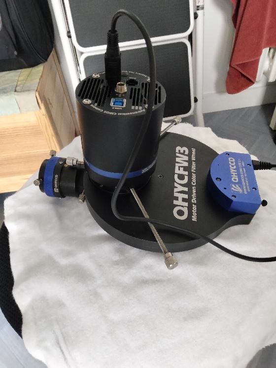 La camera a vendre est une QHY163M + QHYCFW3-M 7 position 36mm +QHYOAG-M et les filtres LRVBSHO OPTOLONG en 36 mm Le tout à sévie une 10 fois environs et en parfait état de fonctionnement, la camera a été vérifier en octobre 2021 au Centre de service de garantie QHYCCD par Jan Soldan en République tchèque. J’ai encore les échanges par mail avec lui et les copie d’écrans.