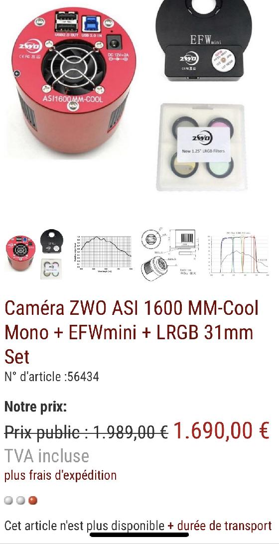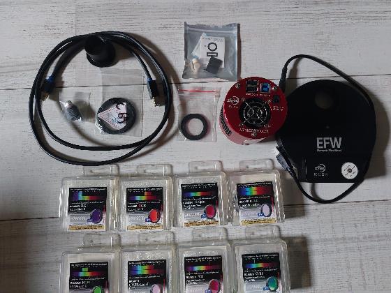 1 caméra zwo asi 1600 mm pro et sa roue a filtre et 4 filtres lrgb