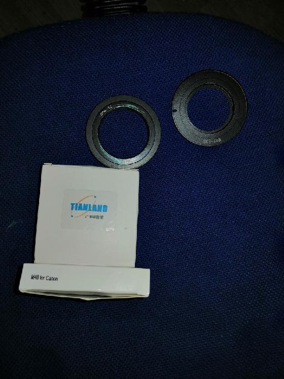 pour APN canon une en M48 neuve avec tube alonge vissant, deux bagues T2 en M42 dont une en Löw profile (2mm d'épaisseur) d'occasion.