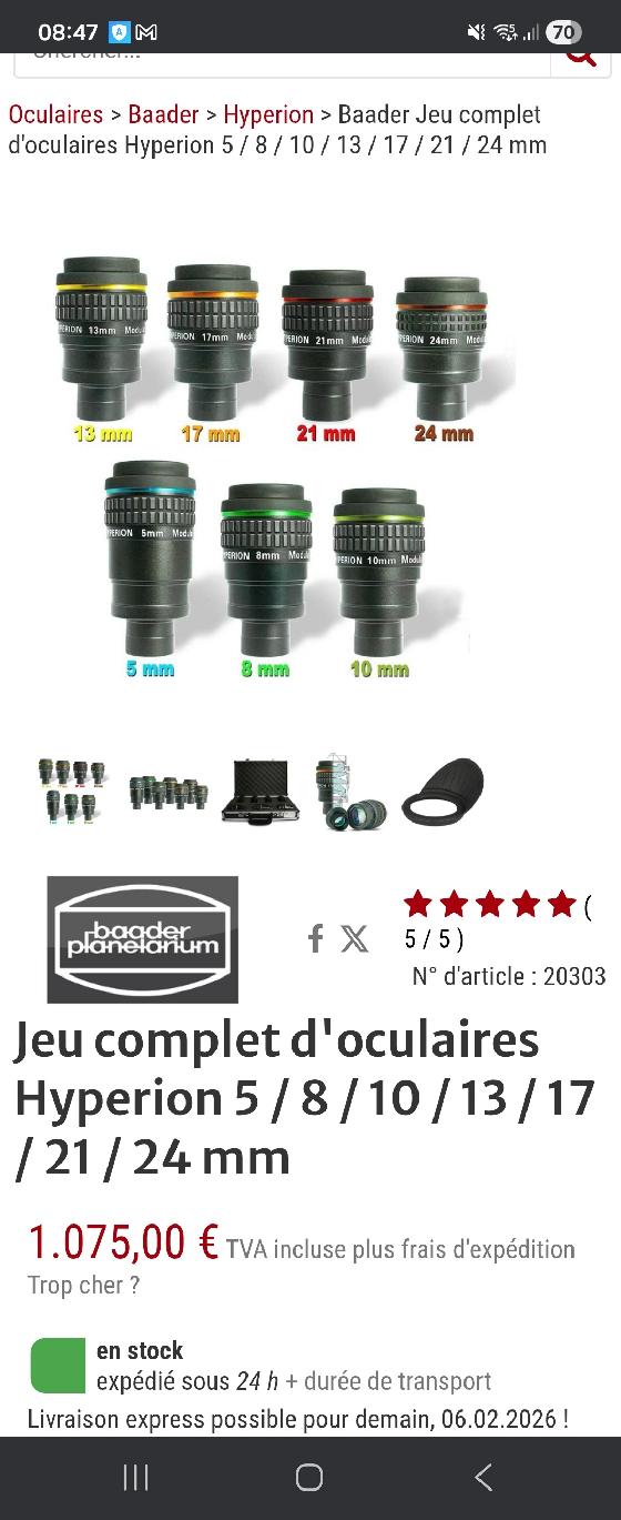 Oculaires hyperion Prix: 800€Hainautle 07-02-2026 par Chris82Oculaires hyperion, valise complète état impeccable