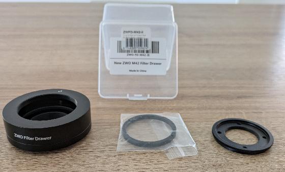Je vends mon tiroir à filtre Zwo Filter Drawer M42/M48 (filtre 2"), son adaptateur m42/M48, et en cadeau un adaptateur pour filtre 1.25".