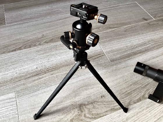 Je met en vente mon mini trépied de table equipé d’une rotule pour APN . Il supporte largement un reflex , la rotule est fluide et équipée de la platine rapide .