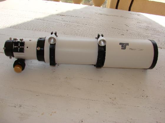 Livrée avec les accessoires suivants : sabot pour chercheur, sac de transport, renvoi coudé, chercheur 9x50, oculaire de base 9mm et oculaire de base 20mm (c'est le kit livré avec le Mak) ainsi qu'un accessoire d'une valeur inestimable : un filtre solaire Astrosolar de fabrication personnelle !