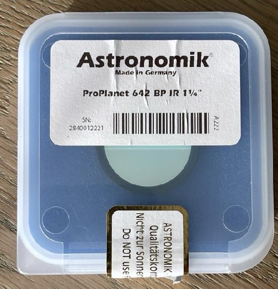 Finistèrele 17-01-2024 par orionis56Vends filtre Astronomik ProPlanet 642 BP IR coulant 31,75mm en excellent état, servi 2 fois (acheté le 3 juin 2023, facture) le ProPlanet 642 BP est un excellent outil soit pour l´imagerie IR de jour avec votre appareil photo numérique, soit pour réduire les effets du seeing et améliorer le contraste lorsqu´il est utilisé pour l´imagerie lunaire et planétaire. Enfin ce sera un très bon filtre H-alpha à bas prix pour débuter en astrophotographie des régions H-alpha du ciel profond