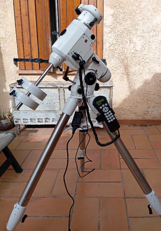 [Satisfait] Monture NEQ6 pro Go-ToPrix: 850€Varle 05-12-2024 par jmrJe vends ma monture NEQ6 Pro Go To en excellent état pour cause de passage à un autre type de télescope. Je la faisais fonctionner avec un Célestron 9,25 avec un excellent suivi. Elle est équipée de son trépied, de son alimentation sur secteur, de sa raquette, de ses 2 contrepoids et d’un renvoi coudé pour son viseur polaire éclairé ce qui est indispensable si on veut faire une bonne mise en station. Je possède aussi le manuel d’utilisation complet en français et les deux câbles (Pierro Astro)qui permettent de relier la raquette directement à l’alimentation et à un ordinateur