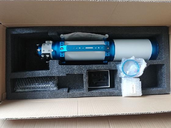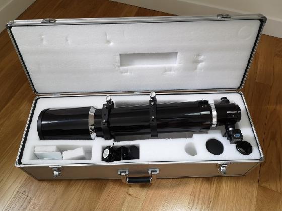 La lunette est en excellent état. Elle dispose d'un masque de bahtinov intégré au cache et d'un aplanisseur de champ William Optics.