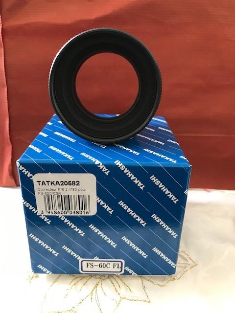 Suite à l'acquisition du réducteur/correcteur pour ma FS60, je me sépare du correcteur simple, en très bon état, avec sa boîte d'origine et les deux bouchons. Permet d'avoir un champ plan pour un diamètre qui couvre la superficie d'un capteur APS-C avec un backfocus d'environ 55mm, faisant passer le F/D de la lunette à environ 6,2.
