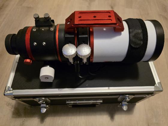 TS Optics quadruplet 70/350mm f5Prix: 900€Seine et Marnele 05-06-2025 par NicolasGLunette quadruplet 70mm d'ouverture pour 350mm de focale F5 de chez TS optics. Elle a lavantage d'accepter même une asi6200 ???? focuser en 3". Je la vend avec le bandeau chauffant et l'adaptateur pour eaf que j'ai désigné specialement pour cette lunette et sa boite de rangement. C'est une lunette purement Astrophotography. Sans backfocus. Photo de M101 faites avec cette lunette et une ASI585MM en 5H d'acquisition.