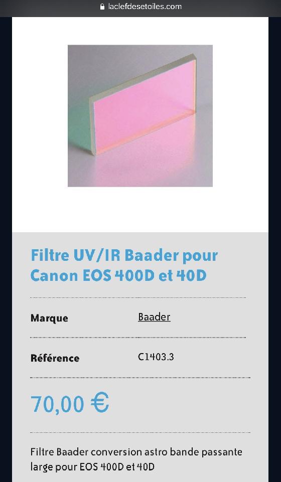 Yvelinesle 14-11-2020 par mrigaud78Filtre neuf acheté il y a 2 semaines sur le site « laclefdesetoiles ». Finalement je pars sur un filtrage partiel sur un APN qui sera dédié à l’Astrophoto donc plus besoin de ce filtre...