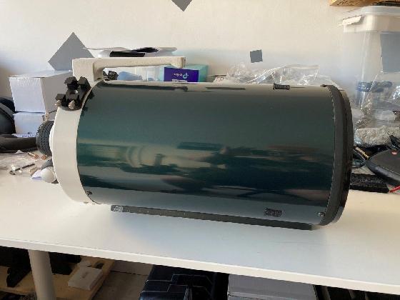 Acheté en 2016, nettoyé, et recollimaté, tout les ans, depuis, par les Équipes de chez MEDAS (dernière opération en 2019). légère traces de des-aluminures au niveau des attaches du miroir primaire, mais tout le reste du miroir est impeccable.