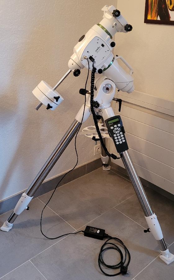 Je vends mon EQ6R (incluant 2 contrepoids de 5kg, le trepied et branchements) achetée en 2021 chez Optic Unterlinden car je souhaite évoluer vers une AM5. Depuis son acquisition, elle ne m’a jamais fait defaut.