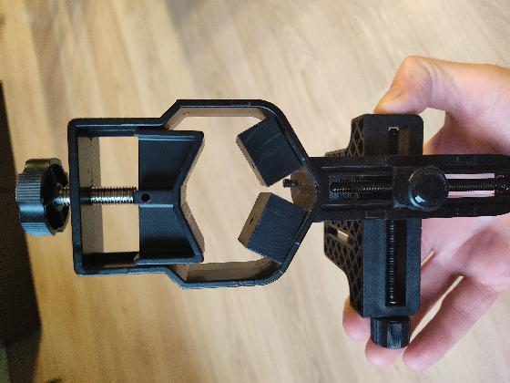 Excellent état, ce modèle permet de régler sur 3 axes la position du smartphone par rapport à l'oculaire.