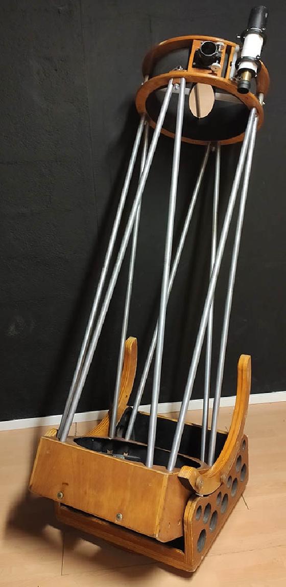 - la structure compacte qui est dimensionnée pour répondre aux contraintes des transports aériens dans un usage de club. Ce télescope a fait de nombreux voyages et a été validé en utilisation extrême. il est vendu avec sa boite et sa house de transport. La structure est légère en comparaison des versions industrielles (17kg + 11kg), elle rentre facilement dans coffre d'une petite berline et se monte en 5min. La structure est optimisée pour réduire au maximum la hauteur de l'oculaire (grand miroir 2daire)