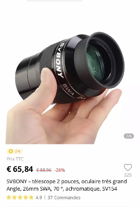 [Satisfait] oculaire Sv Bony 26mm 70º Prix: 39€Varle 25-03-2022 par LeDob300du83Bonjour,