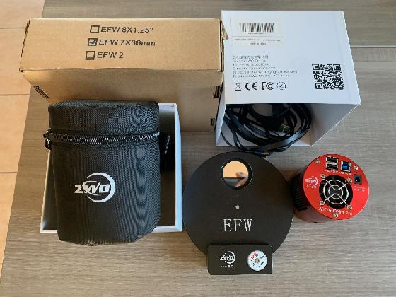 L'ensemble a été acheté chez ZWO au prix de 2100 € frais compris et est en parfait état. Je dispose également d'un diviseur optique Atik que j'ai utilisé avec cet ensemble que je vends moyennant un surcout de 150.