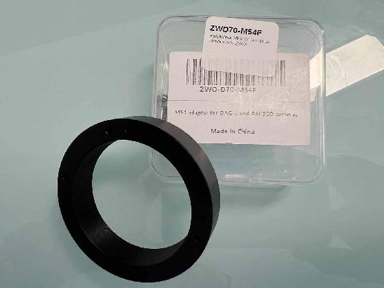 Gardle 12-06-2023 par prodalisSuite à une erreur de commande, je vends une bague de support-filtre ZWO en M54 pour OAG-L, tirage 15mm.