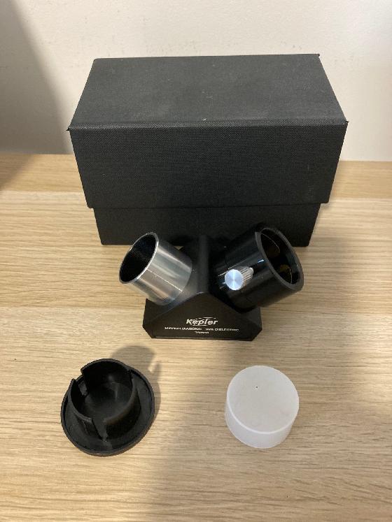 Je vends un Renvoi-coudé à miroir dielectrique 99% et serrage annulaire Kepler 1.25" en excellent état proche du neuf avec boite et bouchon d'origine.