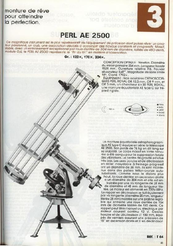 [Satisfait] NEWTON PERL AE 2500Prix: 300€Marnele 02-06-2020 par ZORRONEWTON DE 254mm focale 1524 CM, F/D 6, Conçu par Medas en 1974, monture équatorial 76KG,roue dentée de 304mm en bronze ,fabrication artisanale , le miroir est a revoir( ré aluminer ), Structure serrurier en aluminium et acier