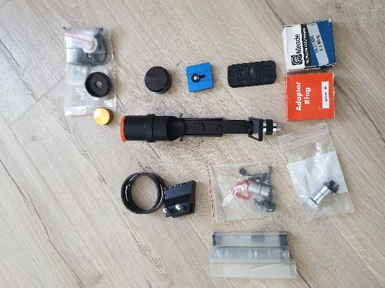 Je met en vente ce lot comprenant principalement un Televue Starbeam (quelques traces d'usage sur le corps et les vis, piles neuves) et en bonus un lot de vis américaines, des adaptateurs T pentax et konica, des petites platines photos, un illuminateur de chercheur Taka et quelques autres visseries et support divers et variés dans un état correct.