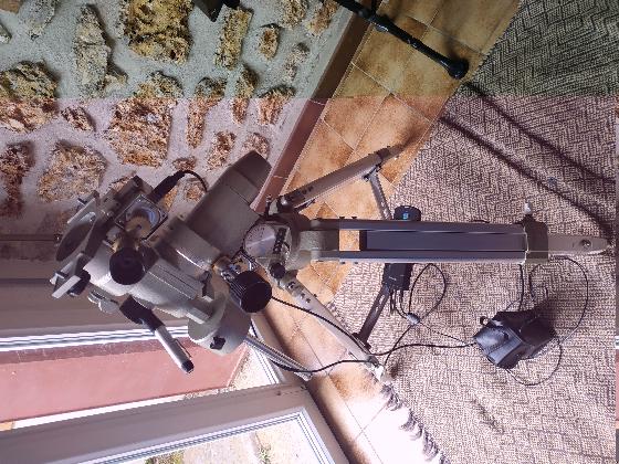 je vends ma monture Vixen Super Polaris avec la motorisation MT1 d'origine deux axes (+ embrayages optionnels), une raquette récente DD3 permettant l'autoguidage par port ST4. Inclus viseur polaire et son éclairage, trépied alu d'origine, un contrepoids, boîtier piles. Je donne aussi une raquette DD1 à réparer (un connecteur DIN à changer sinon fonctionne a priori). Pour 20€ j'ajoute un jeu de deux colliers au choix : diamètre 176mm gris-vert (pour tube type 150/750) ou diamètre 90mm blanc (pour tube de lunette 80mm).