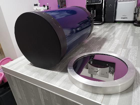 Le miroir présente des traces de nettoyage de l'ancien propriétaire, uniquement visible sous une forte lumière blanche direct. Cela ne m'a jamais gêné en visuel, et étant donné le poids du tube je ne me risque pas à le démonter pour le nettoyer au risque de casser quelque chose ou de faire pire. Il est très bien comme ça :)