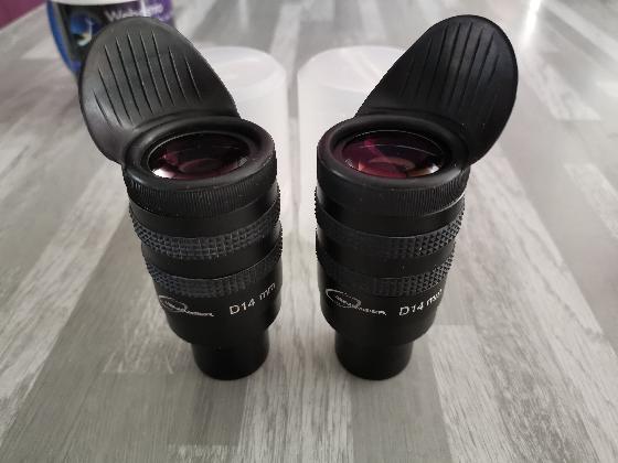 - Deux oculaires Skywatcher plossl 40 mm avec boites et bouchons : 30 € pièce