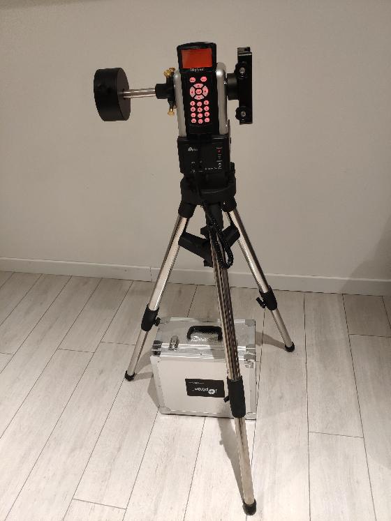 Monture ultra portable (7Kg) avec une belle capacité de charge (15kg d'un côté et éventuellement 5Kg pour un second tube de l'autre côté), silencieuse (moteurs pas à pas) embarquant toutes le nécessaire pour fonctionner en nomade : batteries intégrées, wifi, gps.