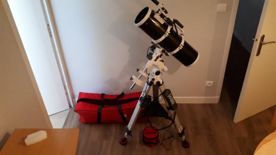 Téléscope Dobson 254/1200Prix: 480€Charente Maritimele 24-09-2019 par ClemflannagahnJe vends un télescope Dobson 254/1200 (plus précisément le Orion Skyquest XT10) . Celui-ci est en parfait état. De plus des contre-poids ont été ajoutés à l'arrière (ils sont amovibles) pour permettre une bonne stabilité même à l'horizontale avec du matériel lourd au bout du télescope. Celui-ci dispose aussi de trois roues pour faciliter le déplacement du télescope (pouvant chacune supporter 150kg) et pouvant se verrouiller.