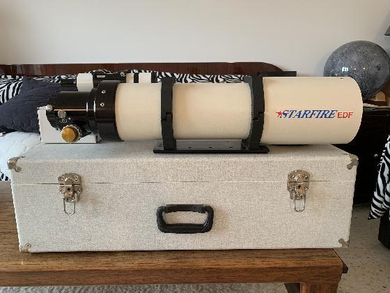 Il est complet avec ses anneaux, une queue d'arronde Losmandy, un porte oculaire AP Feather Touch 2,7" neuf, l'allonge vissante, un chercheur Meade et la valise. Je dispose aussi de la facture d'achat originale.