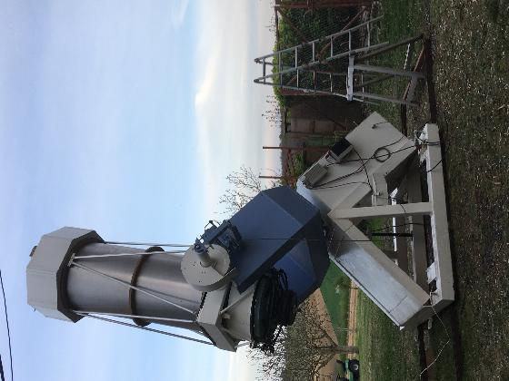 Monture équatoriale à fourche, pilotée par FS2. Masse de l'ensemble, environ 500kg. Des détails mécaniques seraient à revoir pour une utilisation en astrophotographie, CCD. Photos du ciel prises avec téléphone disponibles.