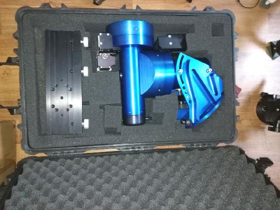 Monture complète avec les accessoires déjà décrits + poids supplémentaire + étui pour électronique et accessoires + étui Pelican pour monture: 5000 Euro.