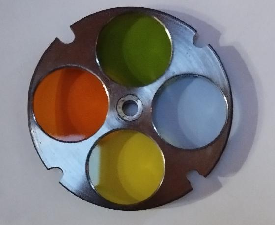 roue quatre filtres 1.5"Prix: 10€Héraultle 18-01-2024 par laurent66Roue ancienne avec quatre filtres 1.5". A déjà servi avec une rayure sur le filtre orange. Je pense sans conséquence sur l'imagerie.