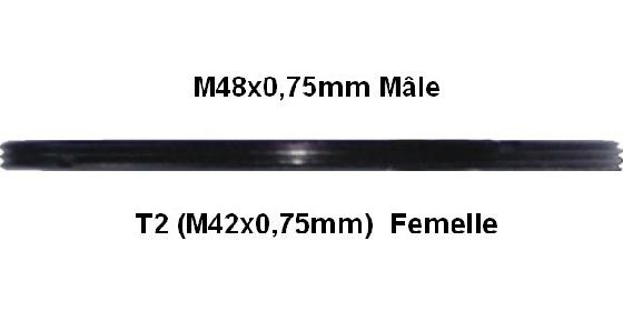 Drômele 10-07-2024 par Lyes_91Cette bague adaptatrice vous permet de transformer un filetage T2 Mâle (coté télescope) en filetage M48 Male (pâr exemple pour visser un accessoire T2 mâle sur un accessoir M48 Femelle sans ajouter de tirage)