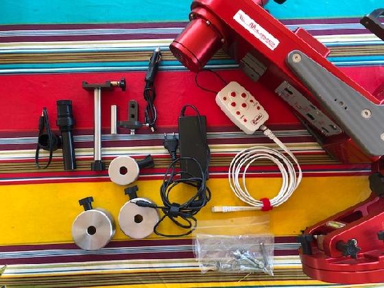 Valeur de l’ensemble à neuf de plus de 7600 euros. Le tout cédé en parfait état de fonctionnement à 4200 euros fermes. Le pied colonne en acier laqué blanc et la platine de fixation Skyméca ne sont pas à vendre. Pas de vente au détail des accessoires.