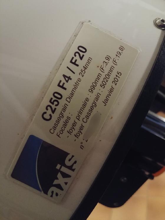 [Satisfait] Cassegrain Axis 250mm F/D 20Prix: 4200€Audele 19-01-2022 par GdensBonjour,