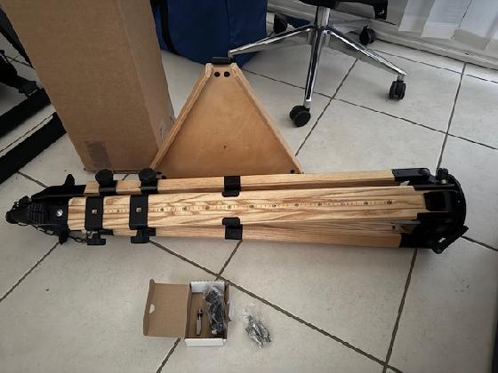 Il mériterait qu'on lui change la tête photo car ça permettrait de monter un instrument légèrement plus lourd, d'autant qu'il y a une fissure (qui ne met pas le matériel a risque - visible sur la dernière photo). Bref pour l'instant ça fait très très bien le taffe. Je lui faisais porter une petite Lulu de 60mm sans aucun soucis.