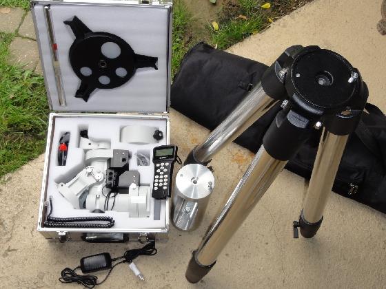 Vendu avec le trepied, monture, 2 contrepoids, raquette de commande, alimentation 12v, platine double.
