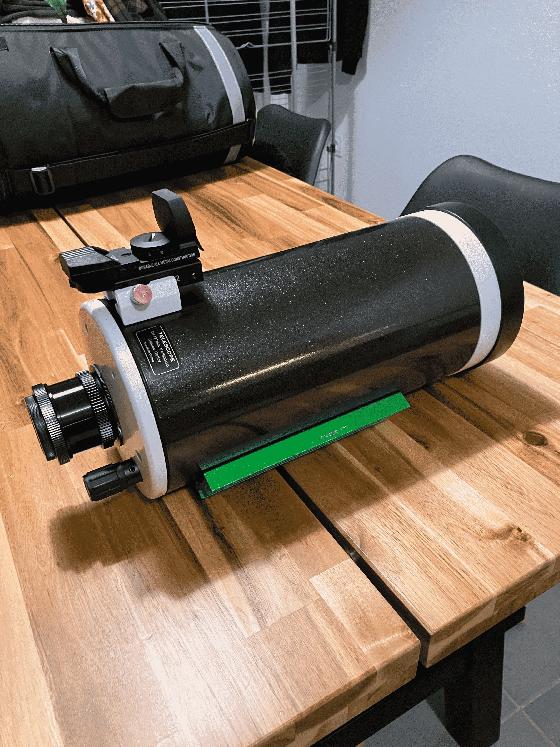 Il est en parfait état, aucun défaut sur l'optique ou sur le tube lui-même. Uniquement des traces de serrage sur la queue d'aronde Vixen. Il a toujours été transporté avec soin dans un sac rembourré et stocké au chaud et au sec. La collimation a été vérifiée récemment.