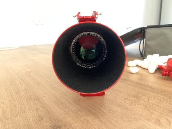 Très bonne petite lunette de 51mm F4,9, corrigée pour plein format, objectif spetzval (le BF est bon quand la MAP est bonne, donc pas de calcul, pas d'adaptateur avec des tailles spécifiques etc).
