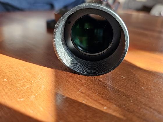 Suite à l'annonce je me suis décidé à lui redessiné et imprimé le diaphragme manquant a partir des côtes du classeur clavé. L'oculaire a des traces d'utilisation sur le chapeau, l'optique est impeccable.