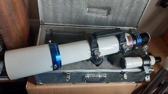Tarnle 11-03-2021 par romainlapougeTélescope Maksutov Sky-Watcher 180/2700 avec son chercheur, renvoie coudé, oculaire 28 mm et 10 mm.