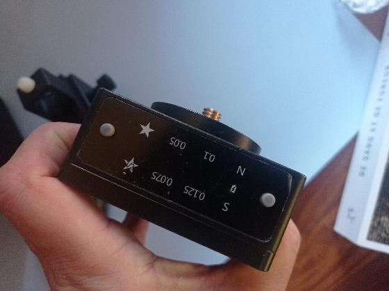 Vendéele 01-11-2024 par stefg1971Petit star tracker Move Shoot Move popularisé par le regretté Allyn Wallace, c'est l'ancien modéle mais qui a l'avantage d'avoir un port pour commander un apn