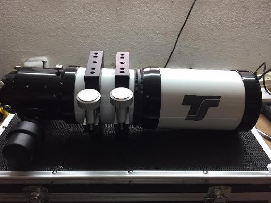Il s'agit de l'ancien modèle équipé d'un focuser en 2'' et de deux colliers de fixation. J'ai acquis cette lunette fin 2014 auprès de TS.