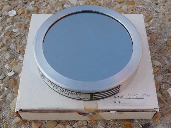 Cherle 13-10-2021 par Laurent1823Filtre solaire en verre pour Celestron C5, Nexstar 5, Meade ETX125 (diamètre intérieur du filtre 152 mm). Matériaux de premier choix associant la qualité optique du verre (planéité parfaite et résistance aux rayures) avec les avantages du polymère imprégné et protégés avec le système exclusif Solar II Plus. En utilisant ce filtre le soleil apparaît de couleur jaune-orange naturelle. La transmission est de 1/100 000. Excellent pour le visuel, il peut aussi être utilisé pour la photo. Monté sur un carter métallique qui vient se placer sur l'ouverture de l'instrument par frottement. Etat impeccable