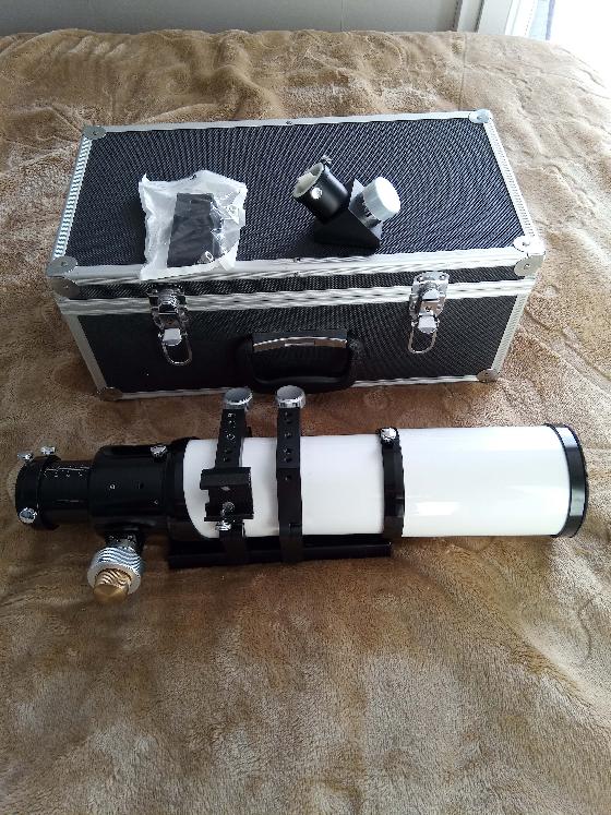 Elle sera vendue dans sa mallette d'origine avec une queue d'arronde vixen et ses colliers (et son support chercheur), le sabot de fixation d'origine , un renvoi coudé 31,75mm et je laisse un contre poids d'équilibrage Baader de 1kg.