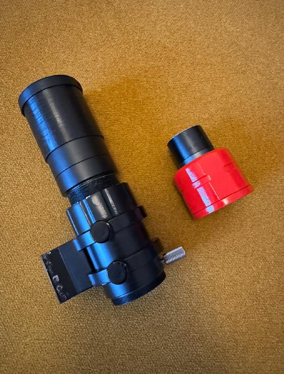 • Caméra Svbony SV305 : Capteur sensible pour des sessions d’astrophotographie efficaces. La caméra a été soigneusement repeinte pour s’harmoniser esthétiquement avec la monture et la lunette.