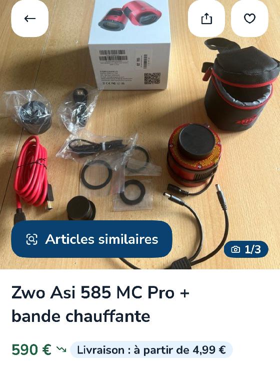 [Satisfait] ZWO ASI585MC PROPrix: 590€Haute-Garonnele 10-09-2025 par patvig31Vends caméra couleur refroidie ZWO ASI585MC Pro :
