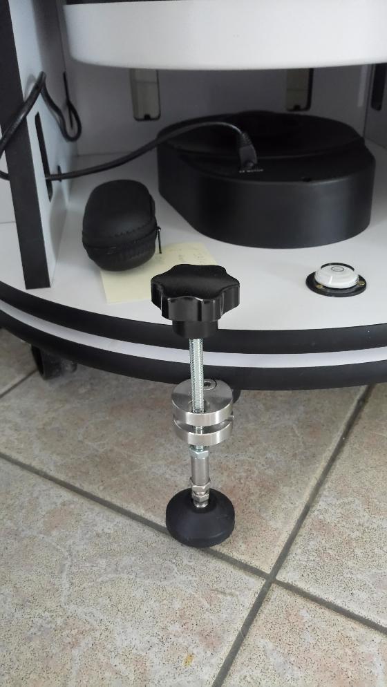 J'ai adapté des roulettes de manutention sous le rocker et un système de vis pour mettre la base horizontale.