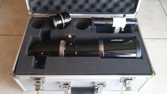 Il a toujours été correctement stocké et a très peu servi. Le tube, le renvoi coudé et les oculaires sont comme neufs avec l'autocollant du contrôle qualité encore intact.